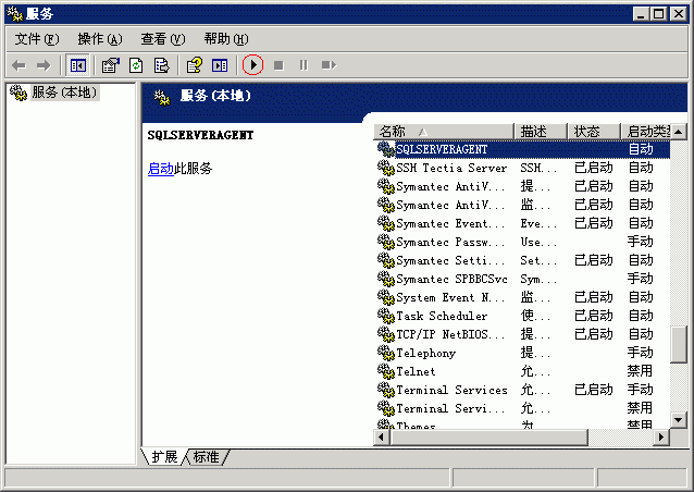 首先,我们远程登陆服务器,先开启"SQLSERVERAGENT"服务,点击开始---程序---管理工具---服务,并在“服务”中开启