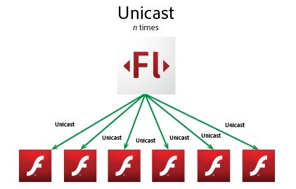 单播(Unicast)传输:在发送者和每一接收者之间实现点对点网络连接。如果一台发送者同时给多个的接收者传输相同的数据,也必须相应的复制多份的相同数据包。如果有大量主机希望获得数据包的同一份拷贝时,将导致发送者负担沉重、延迟长、网络拥塞;为保证一定的服务质量需增加硬件和带宽。